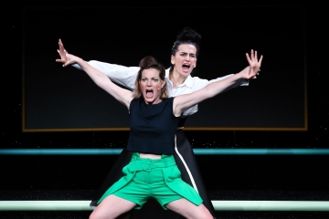 Cancel Culture, Cultural Appropriation, Rassismus, Sexismus und Machtmissbrauch sind die Themen des „Fast“-Musicals, das vom Metropoltheater unter der Regie von Philipp Moschitz als rasanter Reigen auf die Bühne gestellt wird, die Thomas Flach mit Glitzervorhängen umrahmt und nach hinten mit ineinander geschachtelten Rahmen zu einem unendlichen Bild(er-)schirm gestaltet hat. Es geht darum, wer die Erzählhoheit besitzt, wessen Narrativ das stärkste, überzeugendste ist und wem damit die Macht zufällt, die Fäden ziehen zu dürfen. Der Kampf um die Deutungshoheit ist eröffnet, die Arena ist gut gefüllt - lasst die Löwen los!