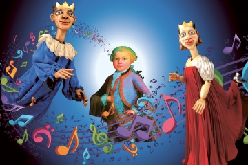 Veranstaltung: Heinrich Klug, Münchner Philharmoniker & Puppet Players: Mozart auf ReisenWas mag er alles gesehen haben auf seinen Reisen quer durch Europa, der kleine Wolferl, das Wunderkind, der phantastische Komponist Wolfgang Amadeus Mozart? Vater Leopold schleppte seine beiden Kinder von Konzertsaal zu Konzertsaal, so wie heute begeisterte Eltern ihre Kinder von einem Casting zum nächsten zerren. Eine Kindheit zwischen Wiesen und Feldern, Ballspielen und Großmuttergeschichten war das nicht - man kann es bei Peter Härtling in seinem wunderbaren Roman „Das ausgestellte Kind“ nachlesen. Üben, Vorspielen, Perücke auf, Bückling machen, sich von Kaiserinnen und anderen gepuderten Damen abbusseln lassen, und immer wieder hinein in die Kutsche. Gefederte Karosserien, Stoßdämpfer und weiche Polster standen damals nicht zur Verfügung. Der kleine Wohlfeil wurde hin- und hergeworfen in seiner „Ruckl-Zuckl-Kutsch“, als wäre das Vehikel ein Synonym für sein weiteres Leben.