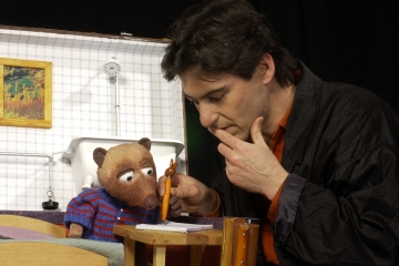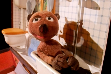 Bis diese Geheimnisse gelüftet sind, müssen die beiden sich erst einmal besser kennnenlernen, über alle Sprachbarrieren und Größenunterschiede hinweg. Christoph Buchfink wechselt in der Produktion „Elisa-Bib oder Keine Stacheln im Koffer“ - inszeniert von Andy Clapp - virtuos immer wieder die Ebenen von Puppenspiel zu Erzählung und wieder zurück. So entsteht ein hinreißendes, sehr poetisches Kindertheater, das einem perfekten erzählerischen Bogen folgt. Dabei wird auch nach Kinderherzenslust geblödelt, wenn Buchfink beispielsweise immer wieder die - imaginäre - Kellertreppe herunterstolpert oder wenn das Thema Pipikakapubs dank des nicht zu übersehenden Klos seine Berechtigung erfährt. Das ist gleichzeitig dezent genug, dass die Poesie nicht darunter leidet. Und wenn sich am Ende herausstellt, dass die große Angst des kleinen Tierchens in seinem Besonders-Sein begründet liegt und es damit aber gleichzeitig zu seiner Mission findet, dann hat hier auf verblüffende Weise die Pädagogik mit ins Spiel gefunden, ohne dass sie aufgefallen wäre - sozusagen incognito. Ein Glücksfall von einem Kindertheaterstück!