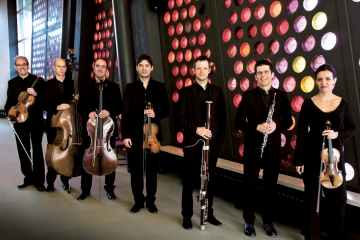 Veranstaltung: Ensemble Berlin: Solisten der Berliner PhilharmonikerEin Ensemble aus einem Orchester heraus zu gründen, hat einen großen Vorteil: Es finden sich immer genug Mitspieler. Und wenn aufgrund eines Termin-Missverständnisses die kurzfristige Umbesetzung mit Berliner Philharmonikern nicht gelingt, dann bekommen die Stipendiaten der Karajan-Akademie eine Chance. Alexa Farré-Brandkamp (Violine 2), François Thirault (Violoncello) und in letzter Sekunde anstelle seines Lehrers Javier Biosca Bas (Fagott) kamen auf diesem Weg erstmals ins bosco, neben den echten Philharmonikern Helena Madoka Berg (Violine 1), Walter Küssner (Viola), Ulrich Wolff (Kontrabass) und Kopf des Unternehmens Ensemble Berlin Christoph Hartmann (Oboe), die ausreichten, die Akademisten zu Höchstleistungen zu führen. Von kleinen Patzern abgesehen, die bei der kurzen Zeit der Einstudierung vernachlässigbar waren.