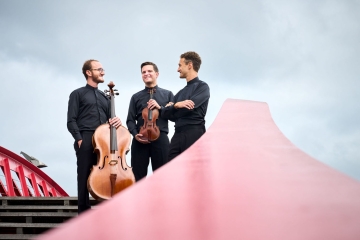 Nach der Pause dann das hundert Jahre später, mitten im zweiten Weltkrieg komponierte Klaviertrio Nr. 2 e-Moll op. 67 von Dmitri Schostakowitsch. Es beginnt mit einem wunderbar gläsern entrückten Solo des Cellos im Flageolett, in das die Geige fast tonlos einstimmt und später auch das Klavier nur ein paar versprengte, von Pausen durchsetzte Töne hinzufügt, bevor in einem schnelleren Tempo sich ganz langsam der Satz entwickelt. Nach der erschütternden Klage des Largo, fein gezupft, erklingt im finalen Allegretto das Zitat eines jüdischen Volkslieds, das – anfangs eher geflüstert – am Ende in einen so wüsten Strudel verwickelt wird (mit einer immer ekstatischer in die Höhe getriebenen Geige), dass man nicht mehr an ein glückliches Ende glaubte. Auch hier wieder gingen die drei jungen Männer an den Rand dessen, was an ihren Instrumenten möglich ist - mit aufregendem Ergebnis!