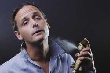 Veranstaltung: Philipp Weber: Weber N°5: Ich liebe ihn!Der Mann braucht kein Image-Design mehr, er hat seinen Ruf als unterfränkische Revolverschnauze längst weg: Philipp Weber, wohnhaft in Amorbach im Odenwald, kam schon zum zweiten Mal mit dem reichlich sperrigen Programmitel „Weber No.5: Ich liebe ihn!“ über die Gautinger, und die schienen irgendwie zu ahnen, was sie da erwartete – ein nicht enden wollender Pointen-Wasserfall, wie ihn das durchaus gestählte Bosco-Publikum nicht alle Tage über den Kopf geschüttet bekommt. Nachdem Weber mit früheren Idyllzertrümmerungsorgien wie „Schief ins Leben“, Honeymoon Massaker“, „Durst“ und „Futter – streng verdaulich“ die Felder Erwachsenwerden, Familienhorror und Ernährungsmythen beackert hatte, wandte sich der studierte Chemiker nun den Themen Werbung und Marketing und damit den uns jederzeit und überall umgebenden Dauer-Lügen zu. Und analog zum Nestlé-Slogan „Nur wo Nutella drauf steht, ist auch Nutella drin“ kam auch hier „Weber pur“ aufs Brot: Das Konzept bzw. Rezept des grundsätzlich hibbeligen Kabarettisten ergibt sich dabei schon aus seiner leptosomen Physiognomie – Dieser Zappel-Philipp ist schlank, von nervöser Blässe und hoher Intellektualität. Auch mit Anfang 40 hat sich der Schlaks mit dem zum Pferdeschwanz gebändigten Langhaar das Erscheinungsbild eines leicht aufsässigen Studenten bewahrt, was nicht nur der rasenden Pointenflut zugute kommt, sondern auch den immer wieder eingestreuten Polit-Statements gegen Rechts jugendliche Frische verleiht.