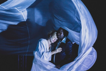 „Othello“ in der Inszenierung von Roberto Ciulli und seinem Theater an der Ruhr destilliert Shakespeares Drama auf zwei ganz große, ganz gegenwärtige Fragen: was bedeutet Herkunft und wie geschieht Manipulation? Othello, den der nigerianische Schauspieler Jubril Sulaimon spielt, kommt nach langer Reise in die Stadt am Mittelmeer, früher mal war er Profi-Boxer. Er gewinnt hier das Herz von Desdemona (Dagmar Geppert), die sich geliebt glaubt im Gegensatz zu bisherigen Erfahrungen. Ihr Vater (Klaus Herzog) steht für die Generation der offen ihre Vorurteile Benennenden: er nennt rassistische Gründe als Einwände gegen den unerwünschten Schwiegersohn. Desdemonas Freundin Emilia (Dagmar Geppert) steht für das, was aus Desdemona hätte werden können, wäre sie mit einem vom Vater ausgewählten Mann verheiratet: eine frustrierte, ihrer Gefühle längst beraubte Society-Lady. Denn Emilias Mann, Jago (Steffen Reuber), tut genau das, was er in diesem Umfeld gelernt hat: Schwächen diagnostizieren, Fallen stellen, Fäden ziehen. Im konkreten Fall bringt er Cassio (Fabio Menéndez) ins Spiel, einst Othellos Freund, den Jago nun zum vermeintlichen Nebenbuhler aufbaut. Dazu genügt ihm ein kleines Requisit: ein Stofftaschentuch. Dieses blütenweiße Rechteck wird zur Projektionsfläche für alle in den Köpfen der Beteiligten vorherrschenden Phantasien: als (Beinahe-)Wäschestück nah am Körper getragen, beweist es größtmögliche Intimitäten; als Geschenk der fernen Mutter, mit einem Zauber versehen, wird es zum Beweis für archaisches Verhalten wie Erfüllung der Prophezeiung gleichermaßen; und als einfach zu platzierender Gegenstand dient es als Spur für betrügerisches Benehmen.
