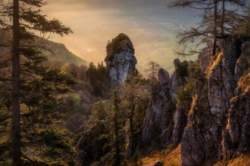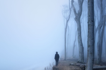Tatsächlich ist einigen der Fotografien von Kilian Schönberger die Auseinandersetzung mit Friedrich, mit den Motiven der Epoche der Romantik, mit denen der Maler sich auseinandergesetzt hat, durchaus anzusehen. Gerade die von Nebel geprägten Wald-Fotografien erzählen, wie in Friedrichs Gemälden, von Geistern, vergangenen Geschichten und einer im Lichtspiel nur zu erahnenden tieferen Textur durchlebter Schicksale. Das Bild, das die Person an der Abbruchkante zeigt, steht ganz deutlich in einerAuseinandersetzung mit den bildnerischen Inszenierungen des Malers, dessen Geburtstag sich heuer zum 250. Mal jährte. Andere Exponate der Ausstellung wiederum setzen das Licht selber in Szene, setzen stärker auf den Augenblick als auf die epochalen Zusammenhänge.