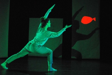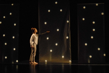 Schon die Kleinsten unter den Theaterzuschauern wissen um den Zusammenhang von Licht und Schatten. Ein Licht aus der Taschenlampe kann an der Zimmerdecke wandern, und mit Licht lässt sich aus den gespreizten Fingern ein Schattenkrokodil an die Wand werfen. Bei der Kindertheaterproduktion aus dem Potsdamer T-Werk wird das Licht sogar zur Hauptfigur. „Das kleine Licht bin ich“, heißt das Lichtspiel-Tanztheater mit Laura Heinecke, inszeniert von Jens-Uwe Sprengel. Ein kreisrunder Lichtball, von Heide Schollähn (die auch für das Bühnenbild verantwortlich zeichnet) live auf die Leinwände projiziert, wird zum Gegenpart für die Tänzerin Laura Heinecke, die in eine intensive, ausschließlich aus und mit Bewegung entstehende Interaktion mit diesem kleinen Licht tritt.