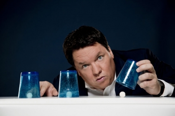 Schleich macht mit seiner „Kunst der Gedrungenheit“ aber nicht nur die Strauss´sche Epigonen-Abwatscherei zu einem Evergreen, sondern auch andere schier Unsterbliche: Die Figur des Zylinder tragenden „Heinrich von Horchen“ (weitere Markenzeichen sind ein Musical-Spazierstock, ein weißer Schal und ein Taschentuch wegen der feuchten Aussprache) setzt Jopie Heesters praktisch ein Denkmal zwischen Würde und Lächerlichkeit. Der untote Von Horchen ist also ein generationsmäßiger „Verwandter“ des toten Strauss, er blickt ähnlich desillusioniert auf die Welt von heute und berichtet munter vor sich hin tatternd davon, dass seine „Enkel alle längst im Heim sind“. Schleich, der geniale Verwandlungskünstler, wechselt wie schon bei etlichen früheren Programmen auch bei „Ehrlich“ hin und her zwischen diesen beiden Typen und baut noch drei weitere drumherum: Den des klassisch-ernsten Politik-Betrachters, den des Stammtisch-Prolls und, am Anfang und am Ende des Abends, den 14-fachen Mörder mit fränkischem Zungenschlag: Der schildert aus dem Knast heraus (38 Jahre Haft) seinen einstigen Amoklauf mit Pistole als blanke Unvermeidlichkeit – die Opfer hatten einfach genervt. Immerhin: „Beim Wirt wars ´n Querschläger.“