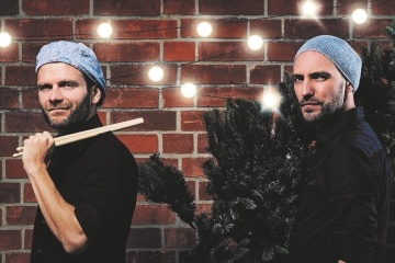 Veranstaltung: Double Drums: Groovin' ChristmasEigentlich liegt es auf der Hand: Ofenblech, Rührschüssel, Schneebesen, Küchenreibe - all das lädt doch so richtig dazu ein, dem einen Rhythmus abzugewinnen. Und da kaum eine andere Zeit im Jahr so durchgetaktet scheint wie die Vorweihnachtszeit, so rasch im Voranschreiten, so trommelnd treibend, bietet es sich direkt an, diesen Wirbel umzumünzen in einen richtig groovigen Sound. Genau das tun Philipp Jungk und Alexander Glöggler alias Double Drums, die zum 1. Dezember ihr Programm „Groovin`Christmas“ als Familienkonzert im bosco präsentierten.