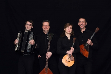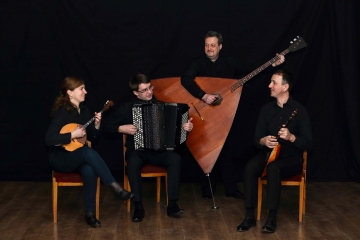 Veranstaltung: Exprompt: Weltmusik aus RusslandIn einer Gegenwart, in der große Reisen schon allein aus Klimaschutzgründen wohl überdacht sein wollen, wird die Reihe „Vielklang“ zum ökologischen Reiseanbieter. Wo, wenn nicht hier kann man guten Gewissens auf Weltreise gehen und dabei so tief in die kulturellen Besonderheiten der vom Saal aus angesteuerten Länder und Regionen einsteigen? Das Konzert des russischen Quartetts Exprompt am Samstagabend war eine solche Reise. Mit Balalaika, Domra und Bajan ging es einmal quer durch dieses unglaublich große Land. Mal auf der Kutsche über die zugefrorene Wolga, mit einem tief melancholischen Kutscher vorn auf dem Bock. Mal bis ins tiefste Sibirien, wo eine Mutter die Winterschuhe der Tochter versteckt, damit diese nicht den daheim unwillkommenen Liebhaber treffen kann (woraufhin die Tochter einfach ohne die Filzstiefelchen, barfuß loszieht). Vom südlichen Russland bis zur Grenze nach Finnland ging die Reise. Und anstelle eines Begrüßungscocktails an Bord wurde - musikalisch, versteht sich - ein finnisches Freundschaftsgetränk gereicht, bei dem ein kleiner Schuss Kräuterlikör solange mit finnischem Wodka verdünnt wird, bis die Freundschaft nicht mehr zu trennen ist.