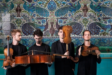 Ganz anders der Einstieg mit dem „Der Scherz“ überschrieben zweiten Quartett aus dem op. 33 von Joseph Haydn, das den Zuhörer mit einem letzten Aufflackern des Themas nach dem eigentlichen Ende verblüfft, ein schöner Gag, wie ihn auch Beethoven gerne ähnlich zelebrierte. Eine Überraschung gab es überdies gleich zu Beginn, da Adrien Jurkovic, Thomas Descamps, Raphaël Pagnon (Bratsche) und Simon Iachemet (Cello) ganz auf einen warmen Klang setzten, den man auch samtig oder mattglänzend bezeichnen könnte. Das ließ diesen Haydn nicht so lebendig strahlen, wie das möglich gewesen wäre, bedeutete aber auch, dass man immer wieder eine schöne Homogenität der vier Streicher hören konnte bis hin zum Trio des Scherzos, in der die erste Geige mit allerlei Portamenti und Glissandi überraschte, die Adrien Jurkovic voll auskostete. Auch das ist wohl als Scherz zu sehen, der dem Charakter eines Bauerntanzes etwas perfekt Kontrastierendes entgegensetzte. Ähnlich positiv der Eindruck des elegischen langsamen Satzes, einem Largo sostenuto, dessen matter Glanz ebenso schön leuchtete, wie das Finalrondo lebhaft um sich kreiste.