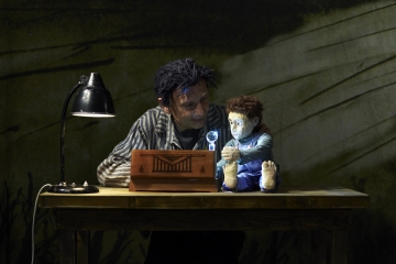 „Wenn du einmal groß bist“, heißt das Menschen- und Figurenspiel, mit dem das Pantaleon Figurentheater im Rahmen der Ausstellung „Hoffnung trotz alledem“ vor Schülern der Realschule Gauting im bosco gastiert. In der Regie von Ioan C. Toma spielt Alexander Baginski mal den KZ-Aufseher, dann den Häftling Fritta, dann wieder führt er die Figuren des Häftlings und des kleinen Tommy. Am Akkordeon gestaltet Maria Dafka auf musikalische Weise die Szenerie.