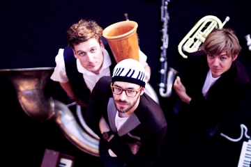 Veranstaltung: David Helbock´s Random/Control: Tour d’Horizon (from Brubeck to Zawinul)Es sah phasenweise so aus, als beugte sich ein Mechaniker bei geöffneter Motorklappe über den Vergaser eines havarierten Autos, während ein Zweiter den Ölstand prüfte und ein Dritter die Zündung probierte: Bei „David Halbock´s Random Control“ sind solche Szenen keine Seltenheit – nur dass die drei Musiker gemeinschaftlich einen Konzertflügel bearbeiteten und kein Auto. Die „Drei von der Tankstelle“ waren in diesem Moment David Helbock (sitzend am Piano), Johannes Bär (in den Innereien des Flügels percussiv tätig) sowie Andreas Broger (außen mit Schlagstöckchen aktiv) – eine Kostprobe der Neuinterpretation des Pianoforte als Saiten- und Schlag- und Tasteninstrument in einem, gleichsam als „eierlegende Wollmilchsau“. Um auch nur einigermaßen erklären zu können, was die drei Österreicher da treiben, muss man sich vielleicht dem Begriff „Random Control“ annähern, den das Trio im Namen führt: Soll er so viel bedeuten wie „zufallsgesteuerte Wiedergabe“ oder doch eher „unangekündigte Kontrolle“ im Sinne eines willentlichen Eingriffs in ein vermeintliches musikalisches Chaos? Mit „Random Control“ könnte laut Lexikon auch die Anzeige der Zufallsspannung an einer Strom-Buchse gemeint sein – damit haben Musiker wie Halbock, Broger und Bär ja beruflich auch zu tun.