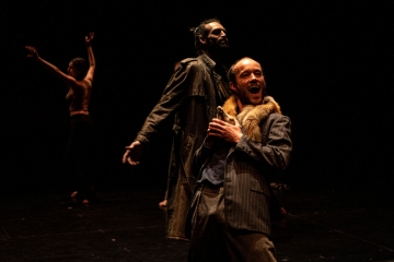 Neben der Sprache steht die Musik. Sie wird zum Seil, auf dem sich tanzen lässt, zum Teppich, der ebenfalls zum Tanz einlädt. Denn Tanz, tänzerische Bewegung ist ein kennzeichnendes Stilmittel für diesen „Pinocchio“, für den Umgang mit seiner Geschichte. So entsteht ein Gesamtkunstwerk aus Bewegungskunst, Sprache, Musik und Interaktion, das auf verschiedenen Ebenen die Frage abklopft: „Was bedeutet es, ein Mensch zu werden und ein Mensch zu sein?“