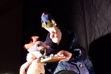 Veranstaltung: Theater mit Hand und Fuß: Der gestiefelte Kater„Zeigt her eure Füße“ - dieses Lied ist allen Vorschulkindern geläufig. Wie aber aus den eigenen Füßen ein armer Müllerssohn, eine Prinzessin oder gar ein großer böser Zauberer werden können, das hat die Gautinger Zuschauerkinder vollkommen fasziniert. Beim Gastspiel des „Theater mit Hand & Fuß“ der Schauspielerin und Theaterwissenschaftlerin Anne Klinge aus Betzenstein erlebten die Kinder das Märchen vom Gestiefelten Kater einmal anders, sozusagen vom Kopf auf die Füße gestellt.