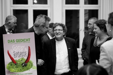 Lyrik vom Feinsten bietet der Weßlinger Verleger Anton G. Leitner seit einem Viertel Jahrhundert. Mit der Berliner Professorin am Ernst-Busch-Institut für Schauspielkunst verbindet den Poeten eine Leidenschaft: Sie ist eine leidenschaftliche Köchin, er ein leidenschaftlicher Esser. Die beiden Lyriker haben deshalb ihren aktuellen 23. Band „Das Gedicht“ mit Blog „Verse für den Gaumenkitzel“ ganz dem Essen und Trinken gewidmet. Nur 50 handverlesene „Drei-Sterne-Gedichte“ von „2000 bis 3000 Einsendungen“ sind in „Götterspeise & Satansbraten“ abgedruckt. „Wir lassen nichts aus – auch nicht den Hunger in der Welt“, denn: „Das ist eine kritische Ausgabe“, sagt Mit-Herausgeber Anton G. Leitner im Gespräch mit Moderatorin Sabine Zaplin.