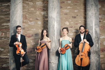 Zu den jungen Himmelsstürmern im Konzertgeschehen zählt fraglos das Aris Quartett. 2009 in Frankfurt am Main gegründet, spielen sich die Musiker*innen weltweit auf die großen Bühnen: die Elbphilharmonie Hamburg, die Wigmore Hall London, die Philharmonie Paris, der Musikverein Wien, das Concertgebouw Amsterdam, die BBC Proms und auch die San Francisco Chamber Music Society präsentieren das Aris Quartett. Bereits im Jugendalter werden die vier Musiker*innen auf Initiative des Kammermusik-Professors Hubert Buchberger zusammengebracht – was als ein Experiment an der Frankfurter Musikhochschule beginnt, erweist sich rasch als Glücksfall. Zur prägnanten Namensgebung kommt es spontan: ARIS sind die vier Endbuchstaben der Vornamen der vier Ensemblemitglieder. Nach Studium bei Günter Pichler (Alban Berg Quartett) in Madrid gelingt der internationale Durchbruch schon früh durch zahlreiche 1. Preise bei renommierten Musikwettbewerben. Großes Aufsehen erregt das Aris Quartett mit der Verleihung des hoch dotierten Kammermusikpreises der Jürgen-Ponto Stiftung sowie gleich fünf Preisen beim Internationalen Musikwettbewerb der ARD in München. Mit der Ernennung zu „New Generation Artists“ der BBC und zu „ECHO Rising Stars“ der European Concert Hall Organisation erhält das Aris Quartett darüber hinaus zwei der international bedeutendsten Auszeichnungen, die zu Einladungen in zahlreiche Kulturmetropolen führen. 2020 folgt der hochdotierte und renommierte Borletti-Buitoni Trust Award.