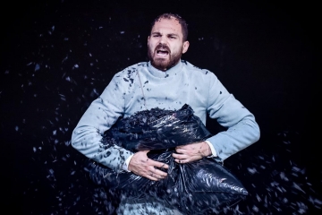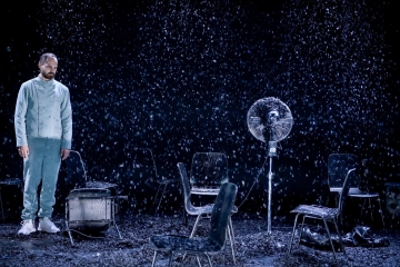 Was das Gautinger Publikum in den dichten 80 Minuten ohne Pause erleben durfte, war großartiges Theater. Schauspieler Bozidar Kocevski entfaltete in seinem Monolog die gesamte Verwandlung einer satten, wohlhabenden Stadt in ein Inferno des Grausamen und Absurden. Zu Beginn sitzt er mit dem Rücken zum Publikum auf der dunklen, leeren Bühne, an deren Hinterseite ein Stapel Stühle steht, in einiger Entfernung davon ein Ventilator. Mit ruhiger, nur ganz unterschwellig von Fassungslosigkeit geprägter Stimme erzählt er die Chronik eines vorhersehbaren und dennoch lange ausgeblendeten Sterbens. Erzählt es aus der Perspektive eines, der überlebt hat und die Tage Revue passieren lässt, einen nach dem anderen. Es ist die Stimme des Arztes Bernard Rieux, der durch die Tage der Pest taumelt wie einer, der seine Aufgabe ausfüllt. Der die Menschen der Stadt weitermachen, den Erreger leugnen oder ihn ahnen, in Panik verfallen, erkranken, sterben sieht und der nach und nach alle Stimmen der Stadt in sich vereint. Kocevski wird zum Hausmeister, zum Journalisten aus Paris, zum Schriftsteller, zu all den anderen, die dem Arzt begegnen. Immer schneller, immer eindringlicher wird dieser Monolog aus vielen Stimmen. Währenddessen greift Kocesvki immer wieder Stühle vom Stapel, hält sie mal am ausgestreckten Arm, balanciert mal von der Sitzfläche auf die Lehne, und immer wieder fallen die Stühle, fallen wie die Menschen, die der Pest zum Opfer fallen. Die zu Asche werden, wie die immer wieder vom Ventilator im Lauf des Abends aufgewirbelten schwarzen Papierfetzen es verbildlichen. Alles wird von diesen schwarzen Fetzen bestäubt, wird verpestet.