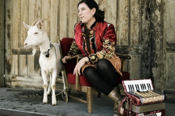 Eine rote Pferdedecke als Rock umgebunden, bringt sich die Künstlerin gleich selbst ins Spiel. Eine sprechsingend vorgetragene Erinnerung fungiert als Schlüssel zum Kosmos „Stucky“, der an diesem Abend entwickelt wird. Geboren in San Francisco, wollte das Mädchen Hula-Tänzerin werden: „I’m gonna make everyone happy“, sagt sie. Die Familie zieht ins Wallis, dort sagt ihr die Lehrerin, als sie von den Ambitionen der neuen Schülerin erfährt, knapp „Hör auf mit dem G’seich“. Die Anekdote steht für vieles. Für Erika Stuckys Gesangskunst etwa, die vordergründig eine aparte Mischung aus Jazz und Jodeln ist, für ihren Sprachwitz, der US-amerikanisches Englisch und Schweizer Hochdeutsch wild durcheinanderwirbelt, aber auch für die innere Zerrissenheit zwischen der Weite Nordamerikas und der kleinen Schweiz. Hinter Stucky und ihrem Gitarristen Oli Hartung bewegen sich Engadiner Ziegen in Zeitlupe.