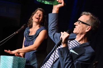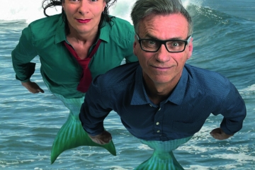 Die beiden Herrschinger haben die Latte mit früheren Programmen wie „Deutsch ist Dada hoch drei“ (2014) oder „Ladies first, Männer Förster“ (2015) natürlich selbst reichlich hoch gelegt: Damals gipfelten die wirklich florettartigen Sprachgefechte in Betrachtungen zu den Umlauten ä, ö und ü und Dialogen wie „Ich böte dir Brühe, bräuchtest du sie“ (Silvana) - „Wenn Möhren drin schwömmen...“ (Thomas) – nicht nur Deutsch-Lehrer waren hingerissen von der Phantasie solcher Nummern. Im „Damenwal“, annonciert als „Kabarett, das übers Wasser geht“, wird an dieses hohe Niveau durchaus angeknüpft – wenn es etwa heißt: „Eine dreckige Lache macht noch keine Pfütze!“ (Silvana), und Thomas zurück patzt: „Und ein Rettich noch kein Meer!“ Es ist bei „Faltsch Wagoni“ auch immer ein Stück weit das ewige Duell zwischen Mann und Frau gewesen, das die Sache am Brodeln hielt. Diesmal entzündete sich der Funke daran, ob das titelgebende „Tier“ dem Wesen nach nun eher weiblich oder männlich sei. Doch wurden dann mal wirklich grammatische Höhen wie der „Wasser-Fall“ bzw. der „Aquativ“ erreicht (z.B. „Das muss man dem Wasser lassen...“), dann folgte zu oft gleich wieder das arg gedrechselte Lied hinterdrein, bei dem Silvana Prosperi ihre atemberaubende Vokalkunst bis hin zu Möwengeschrei dann auch noch kaum einsetzen durfte.