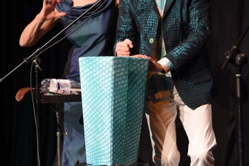 Das thematische „Wasser“, es funktionierte in den meisten Darreichungsformen ganz gut, litt aber doch zuweilen am erkennbaren Bemühen, es in verdaulichen Mengen abzufüllen – das Ganze „con gas“, also mit Conga- oder Leergut-Percussion (Silvana an der PVC-Flasche). Thomas und seine von Vokabel-Lernkärtchen abgelesenen Wasser-Gedichte waren freilich eine Klasse für sich, während Silvana hier ausnahmsweise mal deutlich den Kürzeren zog. So wechselte sich Hochklassiges mit eher Langatmigem ab, echte Sprachkunst mit Flachsinn - man schwamm ein bisschen, hielt sich aber über Wasser. Dass es „Faltsch Wagoni“ dabei auch noch gelang, in ihren Liedern die Verschmutzung der Weltmeere, die Mittelmeer-Flüchtlinge, zerstörerischen Kreuzfahrt-Tourismus und den sorglosen Wasserverbrauch der Industrienationen unterzubringen, kann man durchaus als Bravourstück loben – doch die sprachphilosophische Schärfe ging dabei gelegentlich über Bord.