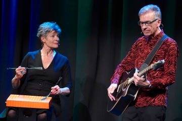 Zu ihrem 40-jährigen Bühnenjubiläum mischen Faltsch Wagoni neue Songs mit Lieblingsnummern aus ihrem umfangreichen Repertoire zu einem poesievollen Konzert. Der akkordverdächtige Klang einer Gitarre, der perküssive Beat einer Trommel und eine gewöhnungsgefährliche Zweistimmigkeit laden zu einem Spaziergang mit Laufmasche durch die Gehörgänge einer musikalischen und sprachlichen Schatzkammer - lustvoller Gedankenswing aus einem Saitental der Überflussgesellschaft.