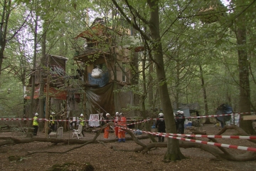 Wenn 31.000 Polizist*innen gegen 100 Baumbesetzer*innen anrücken und es zum Einsatz von Tränengas, Schlagstöcken und Hubsteigern kommt, dann wird ein gerade mal noch 550 Hektar großer "Stieleichen-Hainbuchen-Maiglöckchen-Wald" zum Symbol des Widerstands. Seit 2015 begleitet die Regisseurin Karin de Miguel Wessendorf die Proteste gegen die Rodung des Hambacher Forstes und gegen die Zerstörung der Dörfer am Rand der Braunkohle-Tagebaue, der größten CO²-Quelle Europas. Zuerst ist es nur ein Aufbegehren einzelner Gruppen mit unterschiedlichen Zielen, doch im Herbst 2018 wird der Protest gegen die Rodung schließlich zu einer breiten überregionalen Bewegung.