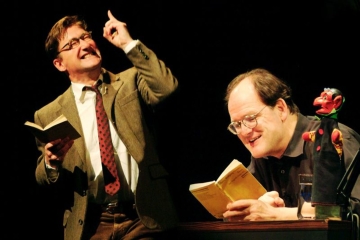 "Zwei Seelen wohnen, ach, in meiner Brust…" Goethe selbst hat im Text verankert, daß nur zwei Darsteller vorgesehen sind. Auf der Bühne daher: Herr Quast, der Meister der multiplen Rollengestaltung, zuständig für Personal und Geräuschkulisse (allein im Osterspaziergang sind das 19 Rollen), und Herr Mosetter, der Meister der Fußnote, zuständig für Subtext und Bühnenbild.