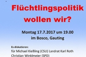 Die folgenden Fragen wollen Gautinger Bürger, der Vorsitzende des Flüchtlingsrats Bayern, der Förderkreis Asyl Gauting e.V. und die Firma GRAIN gGmbH mit Bundestagskandidaten von CSU, SPD, Grüne und FDP des Wahlkreises 224 (Landkreise Starnberg und Landsberg/Lech sowie Stadt Germering) diskutieren. Statt des CSU-Kandidaten, der leider verhindert ist, konnte Landrat Karl Roth, Starnberg, gewonnen werden.