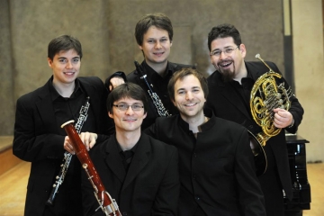 Die Botschaft der fünf Musiker war deutlich: Das Konzert sollte nicht nur den Geist fordern, sondern durfte auch Spaß und Laune machen. Einzig ohne Abstriche, was die musikalische Qualität betrifft. Und nicht nur der humorvolle Beginn des Konzerts mit dem Petit Quatuor des Neoklassizisten des 20. Jahrhunderts Jean Françaix, das der Franzose 1935 für vier Saxophone komponiert hatte und das hier in der Übertragung von Sebastian Manz von den vier Bläsern recht spaßig zubereitet war, kam beim Publikum gut an. Als schließlich das komplette Quintett im Zugabe-Medley abrockte, ging das Publikum besser mit als zuvor im anspruchsvollen restlichen Programm. Dazu gehörte das Quartett von Françaix durchaus dazu, ist es doch recht heikel, einen so zerklüfteten, spritzig-leichten, humoristischen Bläsersatz in ein schlüssiges Ensemble-Klangbild zu verwandeln und auch noch spaßige Pointen deutlich ausgeprägt und aussagekräftig zu platzieren. Ramón Ortega Quero (Oboe) aus Andalusien, Sebastian Manz (Klarinette), David Fernández Alonso (Horn) aus Galizien sowie – für den erkrankten Marc Trénel eingesprungen – Hanno Dönneweg (Fagott) interpretierten das dreisätzige Werk überspitzt und mit expressiver Detailpointierung, die dem Publikum hörbar Vergnügen bereitete. Diese Interpretationsweise galt bis auf die zentrale Cantilène, die mit ihrer fast düsteren, plastischen Substanz ein extremes Kontrastmittel darstellte.