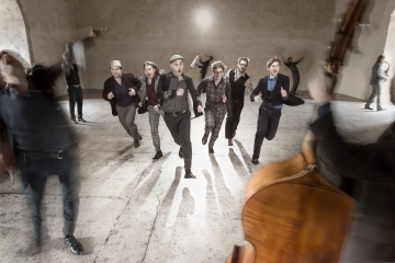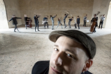 Hört sich an wie ein nächtlicher Eber im Unterholz. Oder sind es gar zwei? Schmatzende Tiefe. Andreas Schaerer hat kurz samt Micro die bosco-Bühne verlassen, um unten wie ein Wildschwein stimmlich zu gründeln, während die fünf anderen Musiker von „Hildegard lernt fliegen“ oben ihre Blasinstrumente wetzen – ein Kosmos aus Lauten. Bilder im Kopf. Plötzlich Schaerers Sprechgesang: „This is about fun...“ Es geht um den „Spaß“, eine solche Truppe zu dirigieren, bei hoch komplexen Kompositionen, die eine wie die andere eine Wundertüte.