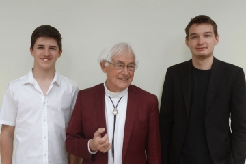 Wenn Heinrich Klug, der seit bald 50 Jahren in Buchendorf lebende langjährige Solocellist der Münchner Philharmoniker zum „Heimspiel“ lädt, liegt es nicht fern, dass er Kammermusikpartner mitbringt, die bei den Konzerten der Münchner Philharmoniker für Kinder mitgewirkt haben. Louis Vandory und Konstantin Egensperger sind preisgekrönte junge Musiker, die vielfach dabei waren und inzwischen vor einer vielversprechenden Karriere stehen.