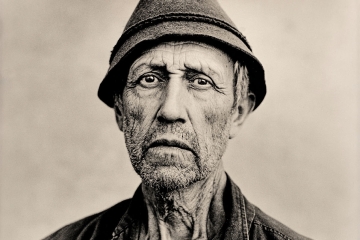 Martin Waldbauer arbeitet analog, und so weiß er erst nach der Arbeit in der Dunkelkammer, ob ihm gelungen ist, was ihm während des Fotografierens vorschwebte. „Es ist eine Begegnung ohne Worte“, erzählt er, „ein kurzer Moment, der festgehalten wird.“ Der Landstreicher weiß nichts davon, dass sein Bild nun in einer Ausstellung in Gauting hängt. Ebenso wenig, wie es wohl der Weißhaarige mit den besonders stechenden Augen wissen wird. Zwischen den Augenbrauen steht ihm eine auffällig scharfe, tiefe Falte. Ein Ausrufezeichen, das zum Hinschauen zwingt. „Der hat eigentlich eher ein weiches Gesicht“, berichtet Waldbauer. Er habe ihm während des Fotografierens die Anweisung gegeben, bitte mal etwas finster zu schauen - da offenbarte sich auf einmal die Falte. Aber sie. muss schon da gewesen sein, von der Zeit hineingegraben in das Gesicht des Bauern.