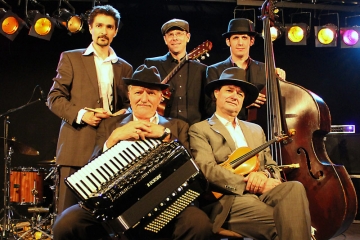Europa könnte momentan etwas mehr Harmonie vertragen – wie gut, dass es die Formation „Radio Europa“ gibt, die wenigstens musikalisch Grenzen überwindet: Zur Spielzeiteröffnung im bosco hatten die fünf Globetrotter, von denen Schlagzeuger Roland Duckarm (Deutsch-Ungar) berichtet, sie häten „für Sie elf Jahre lang Europa bereist“, so einiges Unverzollte im Gepäck: Angefangen mit einem bulgarischen Tanzlied im halsbrecherischen 15-Achtel-Takt bis zu einer Mozart-Opus 40-Variation („Wolferl moves East“), bei der jeder Gaul der Wiener Hofreitschule sofort des Doping verdächtigt würde, so er sich denn zu dieser Gangart bewegte. Allein die weltmeisterliche Besetzung von „Radio Europa“ ist ein Garant dafür, dass das stilistische Crossover jederzeit mit Bravour gemeistert wird: „Teufelsgeiger“ Jörg Widmoser (Violine), unerschrockenes Mastermind des „Modern String Quartet“, macht sich zum Beispiel an Beethovens „Ode an die Freude“ heran wie einst Jimi Hendrix an die amerikanische Nationalhymne, während Andreas Wiersich mit seinem Gitarrenspiel bei „Made in France“ sogar dem großen Django Reinhardt Respekt abgenötigt hätte. Dazu gesellen sich in dieser paneuropäischen Union der tschechisch beeinflusste Kontrabassist Alexander Bayer, der es schafft, Hannibals Alpen-Überquerung tatsächlich in elefantöse Bass-Bilder zu übersetzen, sowie Wolfgang Lell am Akkordeon – über ihn behauptet Band-Sprecher Duckarm doch glatt, er wisse über Slowenien derart komplett Bescheid, „dass ihn sogar Google fragt“. Wie auch immer: Lell spielt seinen Part zwischen Tango, Musette und Schrammelmusik auf dieser Europa-Reise mit mafiöser Gelassenheit - Wissen ist einfach Macht! Und dann noch dieser Drummer: Holt plötzlich drei Blumentöpfe hervor und zaubert nur mit den Händen eine Percussion, dass man sofort ins nächste Gartencenter eilen möchte: „Fragen Sie mal nach einem Topf in C und berichten Sie mir, wie der Verkäufer reagiert hat“, ermuntert Duckarm die begeisterten Zuhörer.