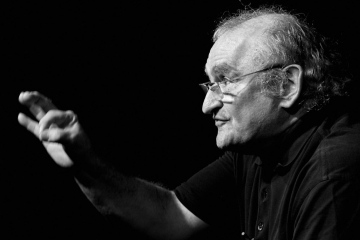 Er zerquetscht eine Fliege und feiert sich selbst, spielt sich seine eigene Geburtstagsfeier vor.