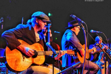 Mit „Ride Your Donkey“, einem frühen Reggae-Hit von 1964, ging´s wunderbar lässig los, gefolgt von der Eigenkomposition „Rock Steady Cumbia“ im Stil jener Zeit vor Bob Marley & Co., als sogar auf Jamaika noch der Ska den Ton angab. „Ist eine Art Auftragswerk unseres Gitarrenbauers“, erzählt Schneider – der wollte sich offenbar lieber mit Musik entlohnen lassen als mit schnödem Geld. Und weiter wurde munter im jüngsten „Stimulators“-Album Travelogue (zu deutsch: Fahrtenbuch) geblättert, das unter anderem die Hommage „Django Style“ an den Gipsy Swing-Gott Django Reinhardt enthält und noch dazu den Johnny-Depp-Auftritt aus dem Film „Chocolat“ zitiert – um die Texte kümmert sich übrigens meist Leadsänger und Ko-Gitarrist Oliver Stephan, der notfalls auch die Gabe einer schmutzig-rauen Stimme à la Tom Waits entwickelt, doch davon später. Die sechs Stimulatoren zeigten auch nach längerer Konzertpause ohne Umschweife, wie stilsicher sie fast überall zu Hause sind - Reggae und Ska, Swing, langsamer Blues, R & B, Jazz, Latin. Immer wieder sogar mit Übergängen von einer zur anderen Gangart innerhalb eines einzigen Stücks. Diese Arrangements sind derart geschmeidig und technisch souverän, dass sie wie der Inhalt eines üppigen musikalischen Früchtekorbs schmecken, besonders saftig wirkte das von Blues zu Latin changierende „I Wish You Would“, bei dem sich Peter Schneider an seiner Solo-Gitarre erstmals so richtig austoben kann. Ebenso glänzt hier der vorzügliche Trompeter Florian Sagner, allerdings an den Kongas. Mit Thomas Roth am Altsaxophon hatten „The Stimulators“ diesmal an Stelle ihres Stammspielers Marcio Tubino (sax, flute, perussion, vocals) einen Rückkehrer dabei, der an der Seite bzw. im Wechsel mit Sagner teils groß aufspielte, als wäre er keinen Tag weg gewesen. Unverzichtbar im „Mannschaftsgefüge“ auch Uli Lehmann am Bass und Hans Mühlegg an den Drums.