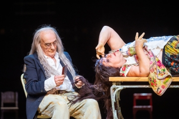 Diese Frage nach der Reflexion einer ungreifbar gewordenen Welt beschäftigt auch das Theater. Eva Mattes und Roberto Ciulli nehmen Kermanis Texte zum Ausgang und Kompass für eine Expedition zum Befragen unserer Gegenwart. Damit begegnen sich erstmals zwei Künstlerpersönlichkeiten auf der Bühne, deren ungewöhnliche Theaterbiografien seit fast sechzig Jahren und bis heute Spuren hinterlassen.