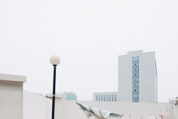 Ein Garagenhof vor einer Hochhaussiedlung, fünf weiße, gleichförmige Garagentore, drei weiße Wohntürme, einzig ein sprirriger Baum trägt etwas Grün. Ein pilzgleiches weißes Betongebäude inmitten einer weißen Schneelandschaft - zur Tunnellüftung gedacht. Ein anderes weißes Gebäude im Schnee, von roten, Rechenkästchen gleichen Metallstreben durchzogen die Glasfront dieses Wartungshäuschens - ein weißer Hund stromert davor durch den Schnee. „Neonatur“, nennt der in Gauting aufgewachsene Architekt und Fotograf Toni Schade die Ausstellung, die am Dienstagabend im Rahmen des Themenschwerpunktes „Mensch im Anthropozän“ in der bar rosso eröffnet wurde und dort bis zum 23. März zu sehen ist.