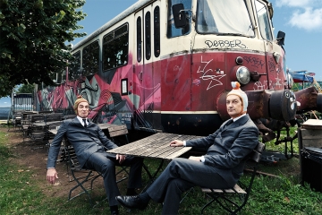 Es braucht nicht mehr als zwei Stühle und einen Haufen Kreativität, Sprachkunstfertigkeit und geschliffenen Witz, um ein Publikum in Bann zu ziehen. Vielleicht noch zwei Bommelmützen, aber die sind bei Sebastian Rüger und Frank Smilgies, alias „Ulan & Bator“, ohnehin obligatorisch. Die Mützen sind keine Nebensache, sie markieren einen wichtigen Schritt in dem beziehungsreichen Kabarettprogramm: Mit der Bedeckung des Kopfes entfesseln die bis dahin erschreckend ernsten, in Grau gewandeten Herren ihre surrealistisch-hyperkonkrete Komik und damit die Lachsalven des Publikums.